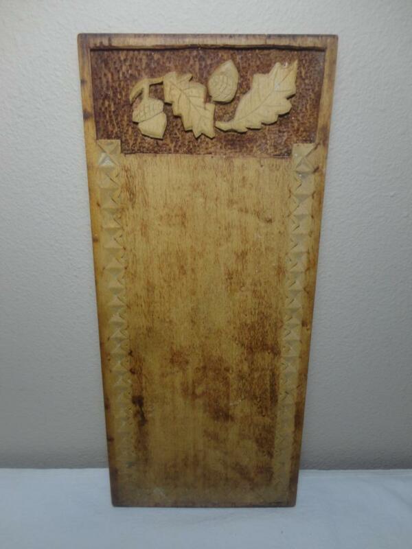 PRIMITIVE HAND CARVED CUTTING BOARD with ACORNS LEAVES