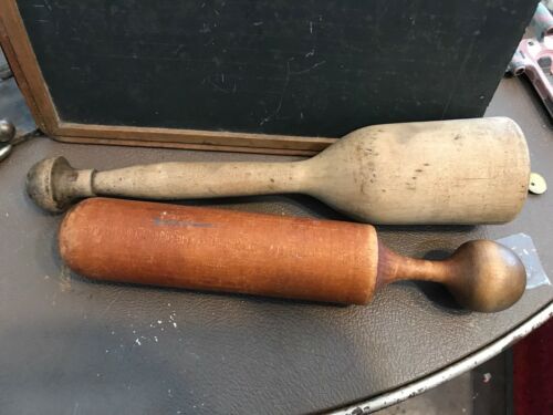 Title (ebay affiliate link): 2 Vintage Primitive Wood Wooden Kitchen Pestle Masher Utensil Meat Pounder