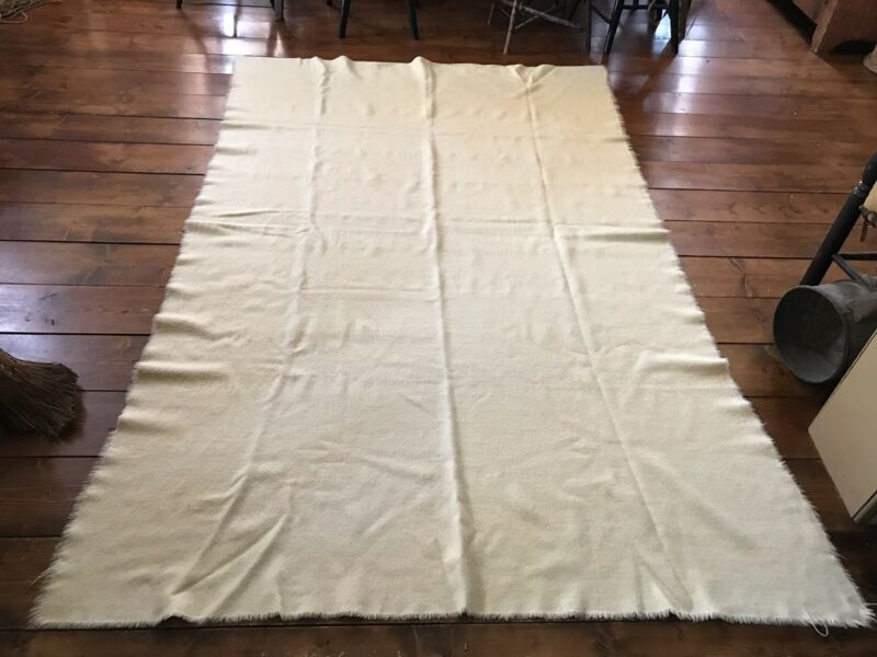 Huge Old Antique Cream Homespun Wool Blanket Textile AAFA