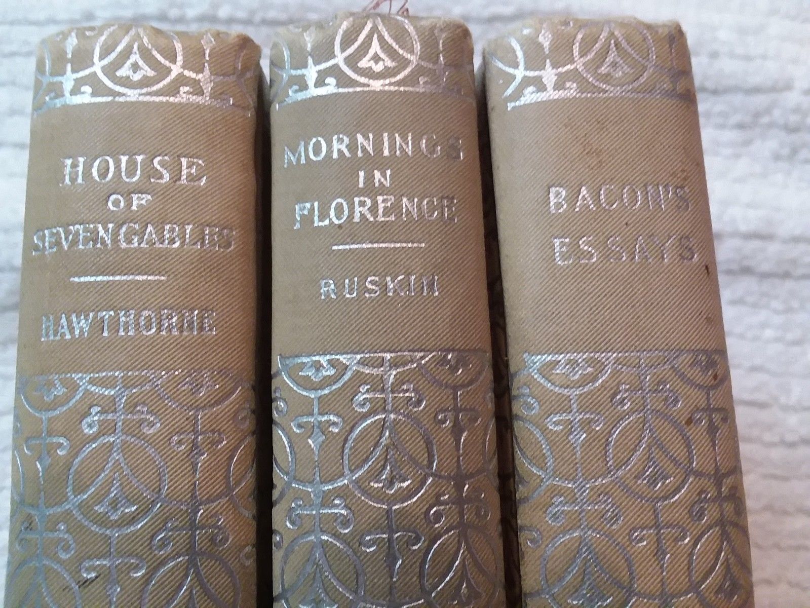 Title (ebay affiliate link): ANTIQUE BOOKS RUSKIN, HAWTHORNE AND BACON SET OF THREE