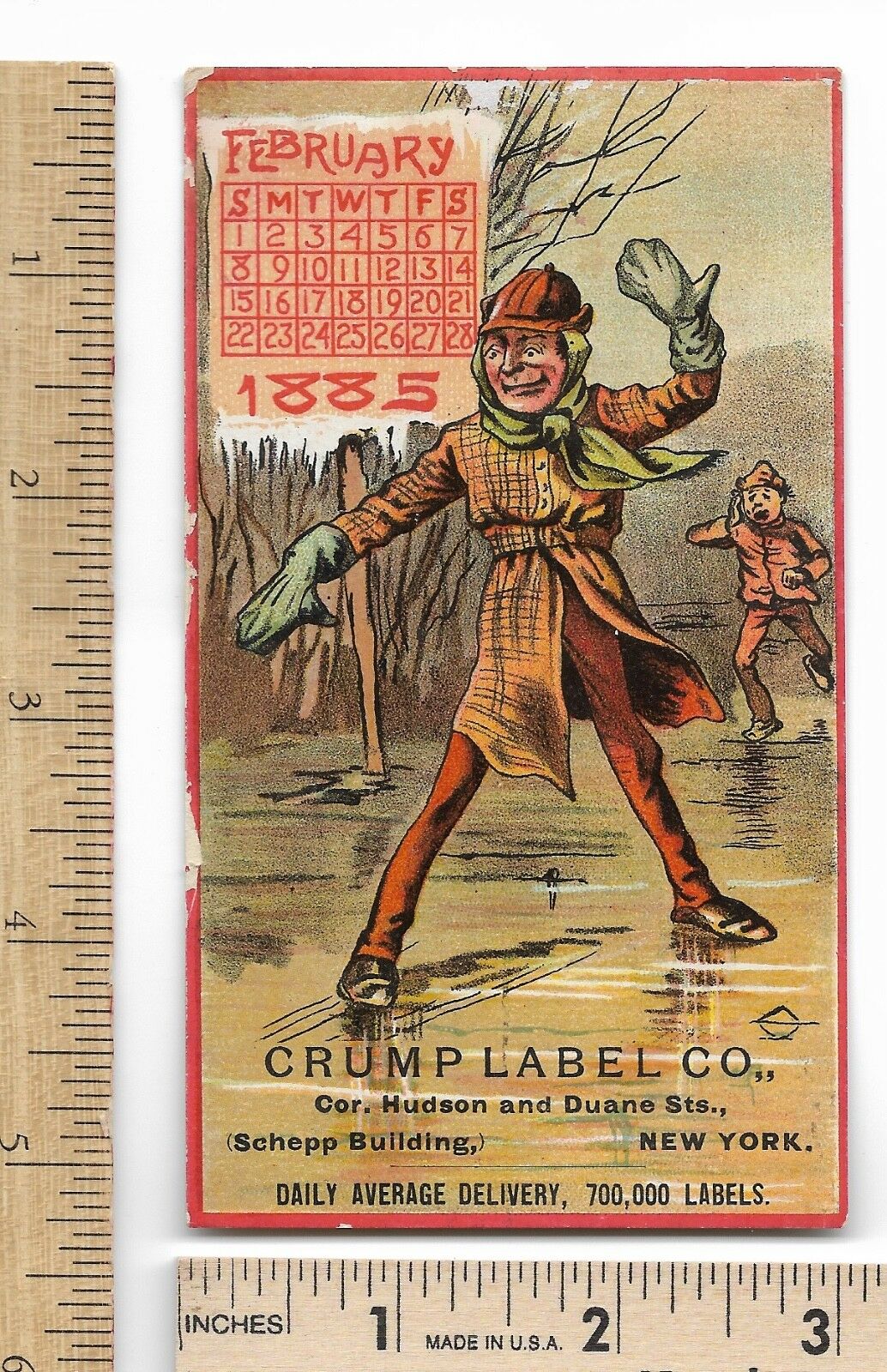 Title (ebay affiliate link): Printer: CRUMP LABEL CO. February 1885 Ice Skaters Trade Card