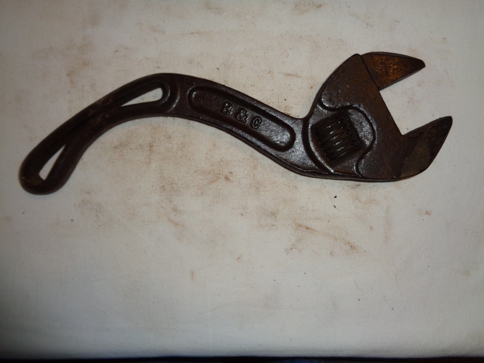 Title (ebay affiliate link): CB~Antique Wrench marked B & C, 12"~curved handle~Farm Tool