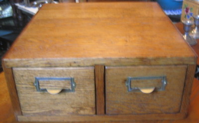 Title (ebay affiliate link): Antique Oak Library Index Card Catalog Filing File Box