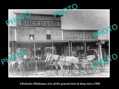 OLD LARGE HISTORIC PHOTO OF CHICKASHA OKLAHOMA, THE DRUG & GENERAL STORE c1900
