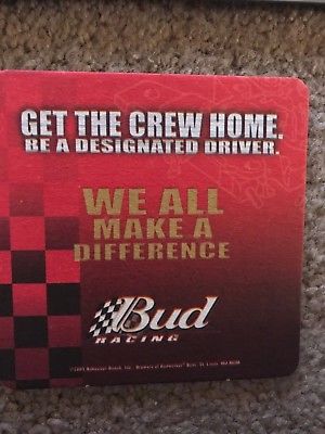 Title (ebay affiliate link): BUDWEISER BEER COASTER MINT BUD GET THE CREW HOME BE A DES. DRV NASCAR RACING