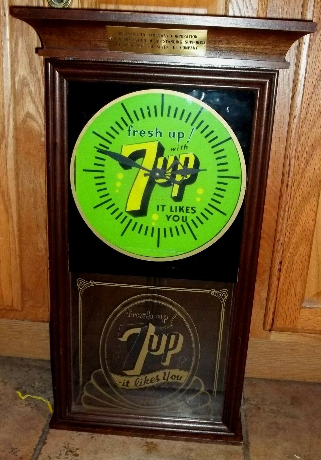 RARE 7UP 23" tall LIMITED EDITION PRESENTATION WALL CLOCK - WORKING