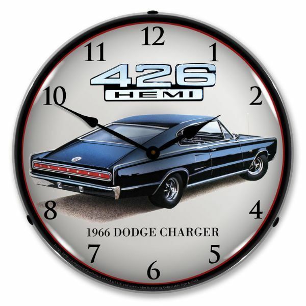 (NEW) 1966 Dodge Charger HEMI Lighted Wall Clock 14" x 14"
