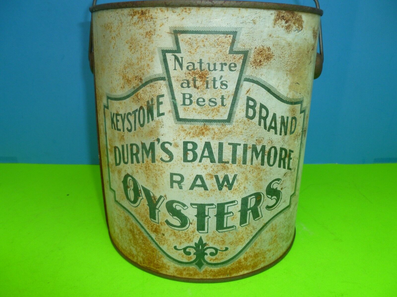Title (ebay affiliate link): Vintage Keystone Brand "Durm''s Baltimore" Raw Oyster 1 Gal Tin, No Lid