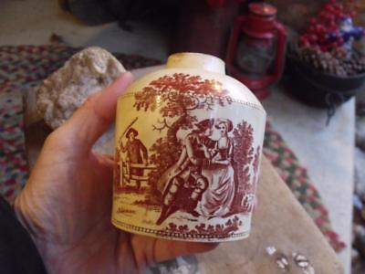 Old Rustic Primitive Antique Transferware Jar Father Catching Courting Couple