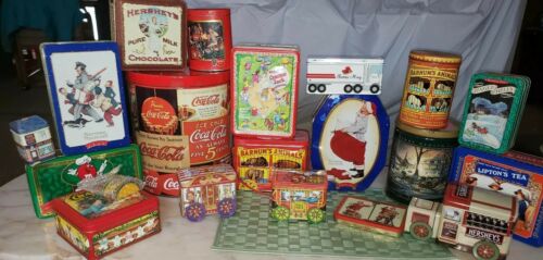 Title (ebay affiliate link): VTG Tin Lot Storage Canister Metal Containers Liptons, Coca Cola, Barnums,Fannie