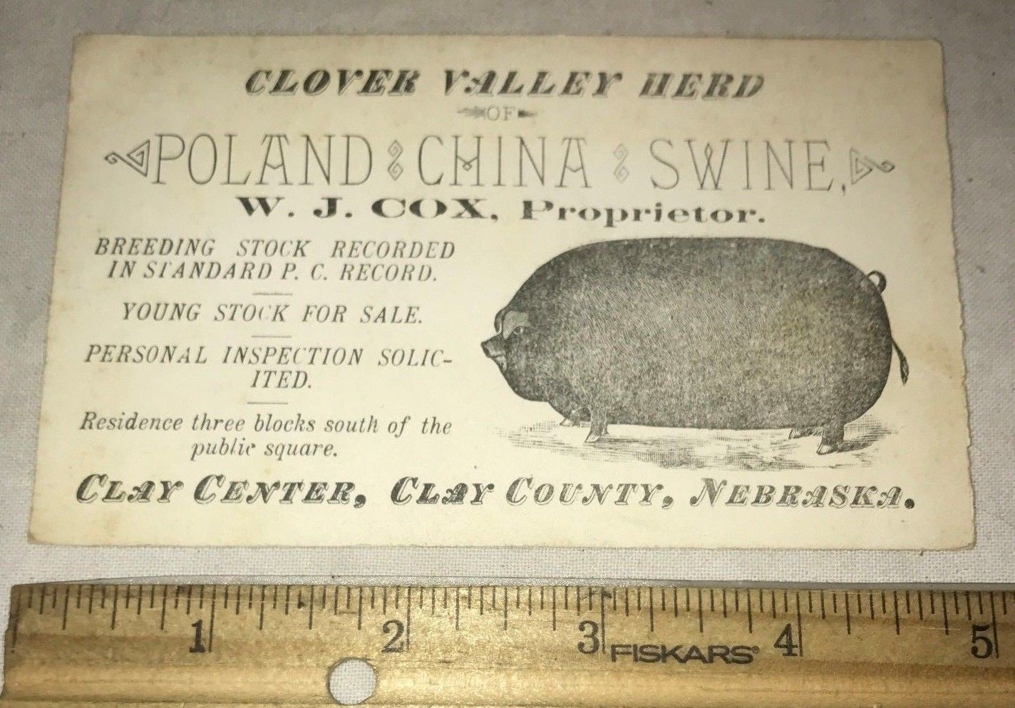ANTIQUE FARM CALLING BUSINESS CARD CLAY CENTER NE POLAND CHINA SWINE NEBRASKA