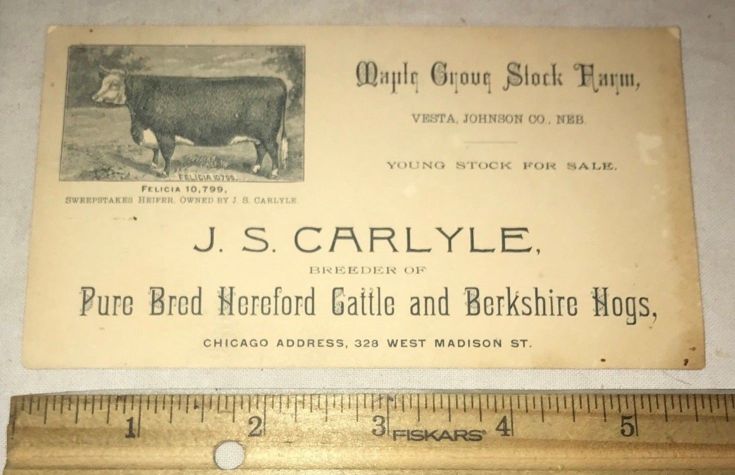 ANTIQUE FARM CALLING BUSINESS CARD HEREFORD CATTLE VESTA NE MAPLE GROVE STOCK