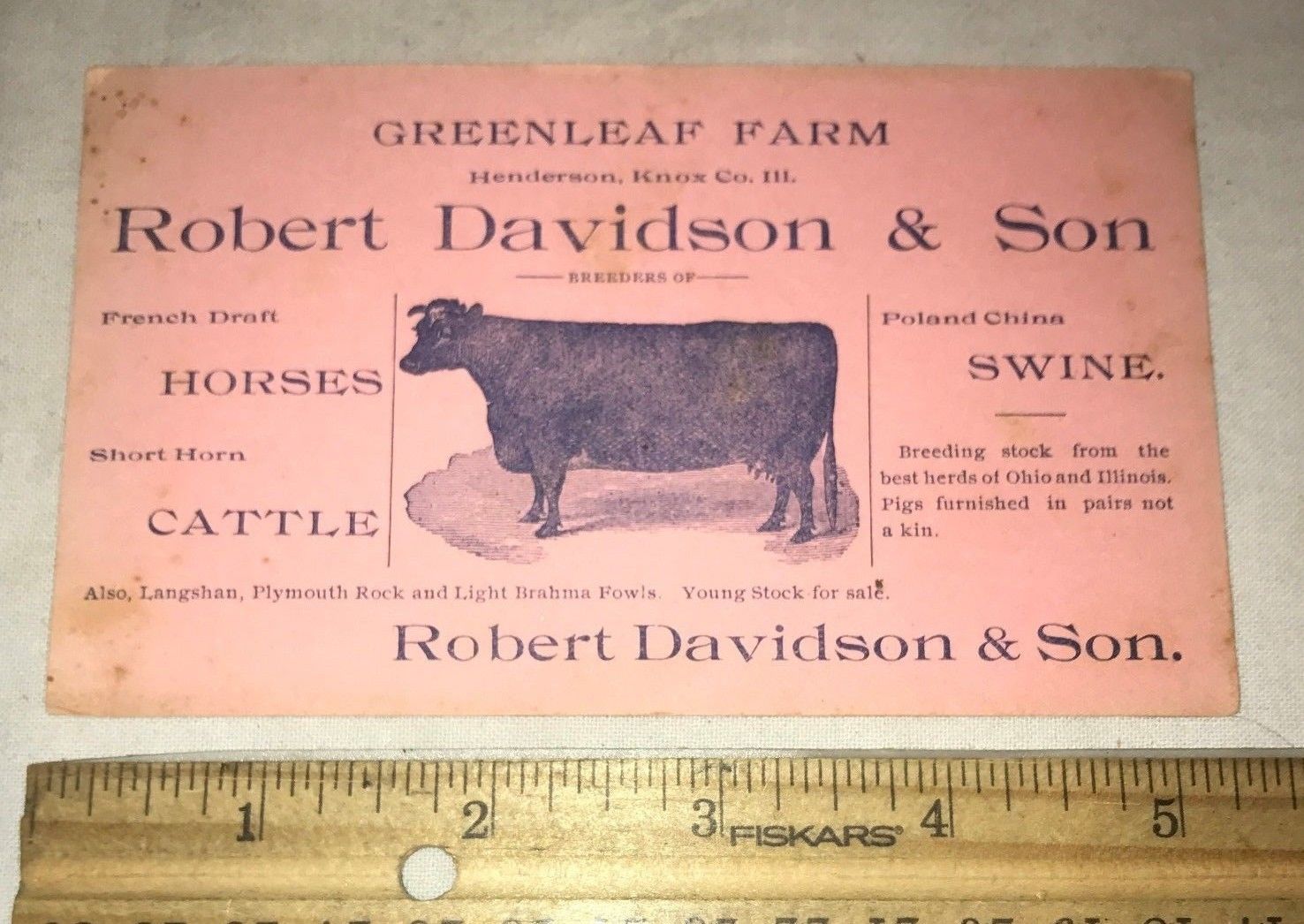 ANTIQUE FARM CALLING BUSINESS CARD HENDERSON ILLINOIS IL SHORT HORN CATTLE COW