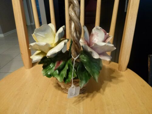 Vintage Genuine Italian NUOVA CAPODIMONTE Porcelain Basket Flowers 9" tall