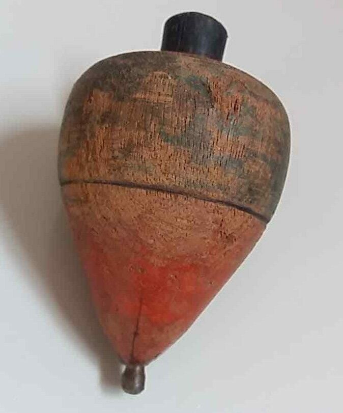 1912s Vintage Wooden Spinning Toy Top with Metal Tip