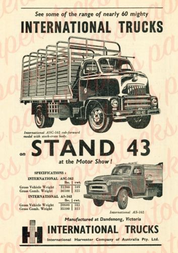 c.1940s INTERNATIONAL HARVESTER TRUCKS AUS VINTAGE AD A3 PRINT POSTER AUTOMOBILE