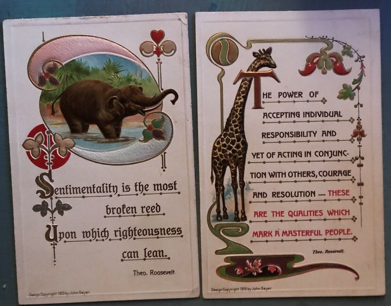 Lot of 2 Vintage 1908 Postcards President Theodore Teddy Roosevelt Quotes-a703