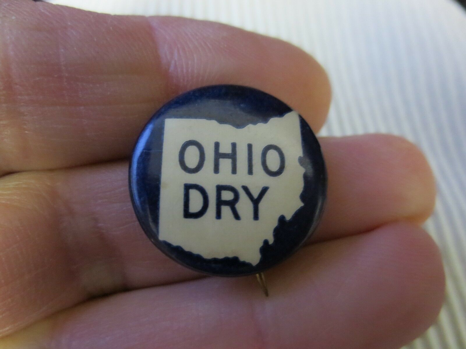 Scarce Celluloid Ca. 1920 Prohibition Pin Ohio Dry Original No Reserve
