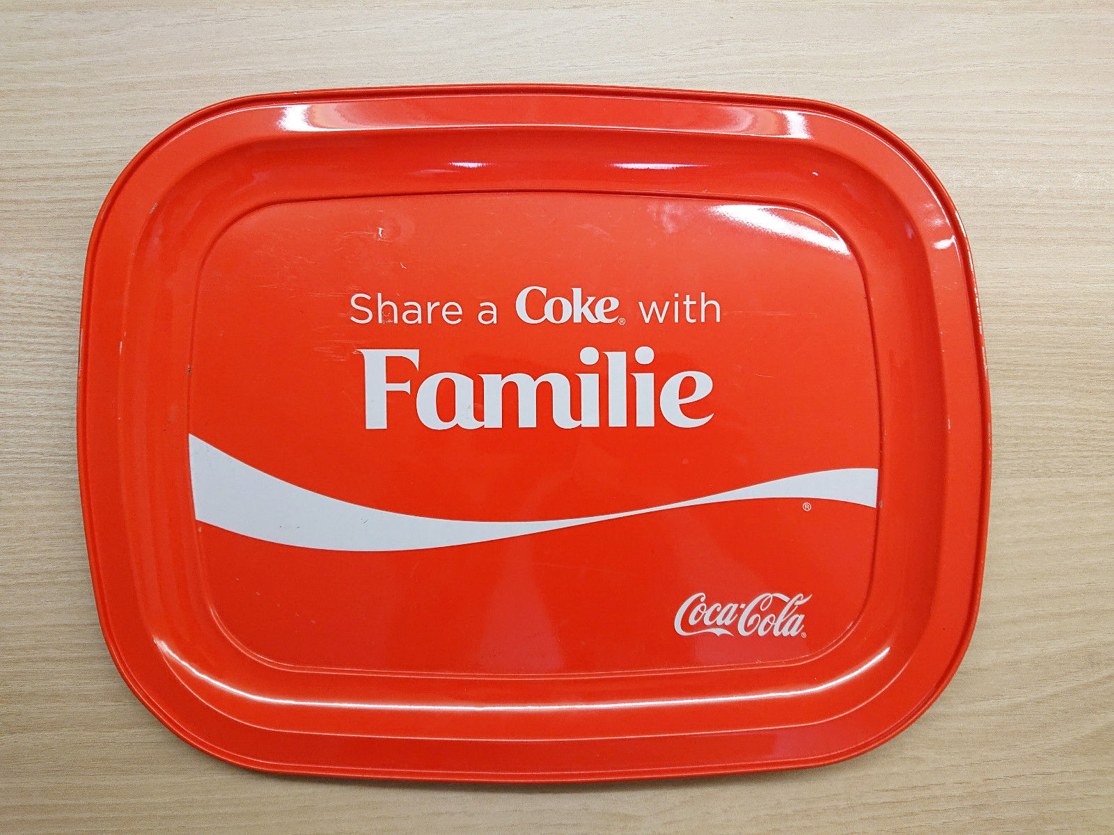 Title (ebay affiliate link): Coca Cola Vintage Tray - Share a Coke with Familie 12" x 9.25" 30.5cm x 23.5cm