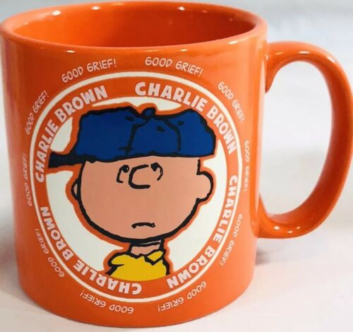 Title (ebay affiliate link): Peanuts Charlie Brown Coffee Cup Mug Good Grief Charlie Brown Large Orange VTG