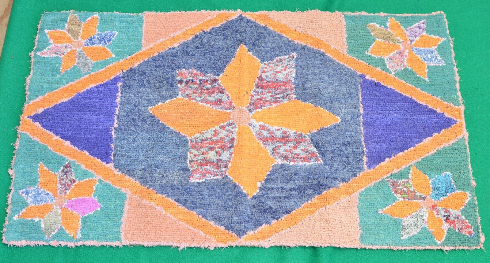 - Folk Art Hooked Throw Rug Hand Made Primitive Country Cottage- Antique