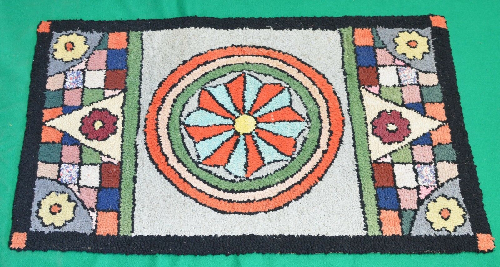 Title (ebay affiliate link): QUALITY - Folk Art Hooked Throw Rug Hand Made Primitive Country Cottage- Antique