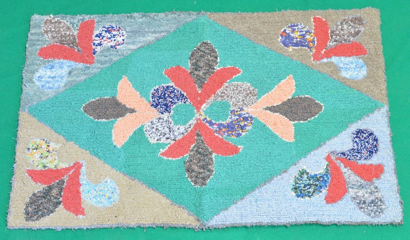 Title (ebay affiliate link): QUALITY- Folk Art Hooked Throw Rug Hand Made Primitive Country Cottage- Antique
