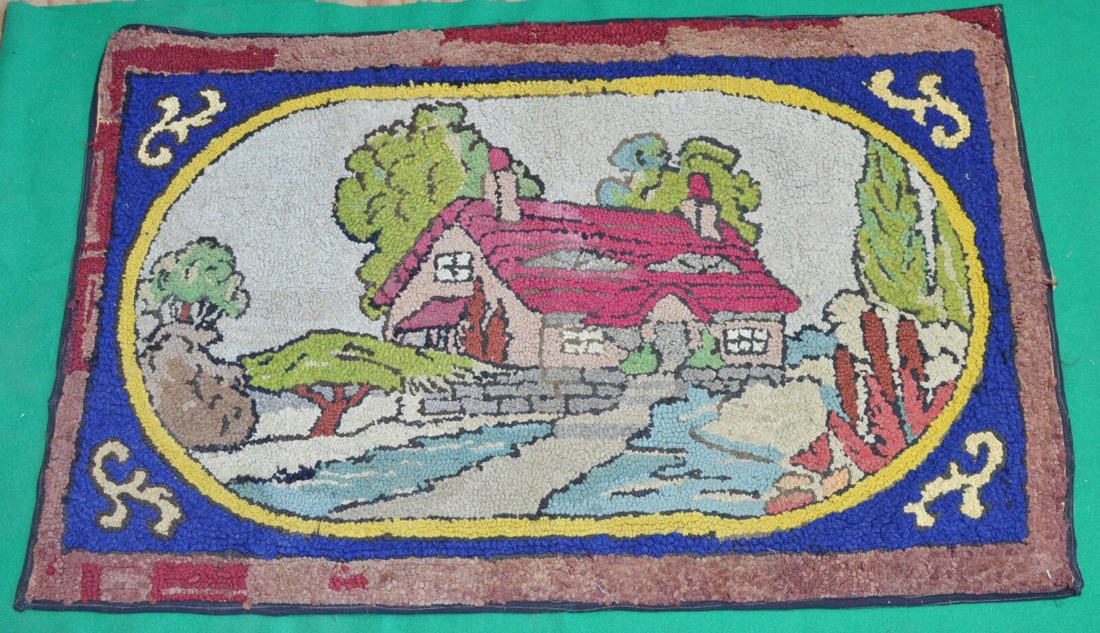Title (ebay affiliate link): QUALITY- Folk Art Hooked Throw Rug Hand Made Primitive Country Cottage- Antique