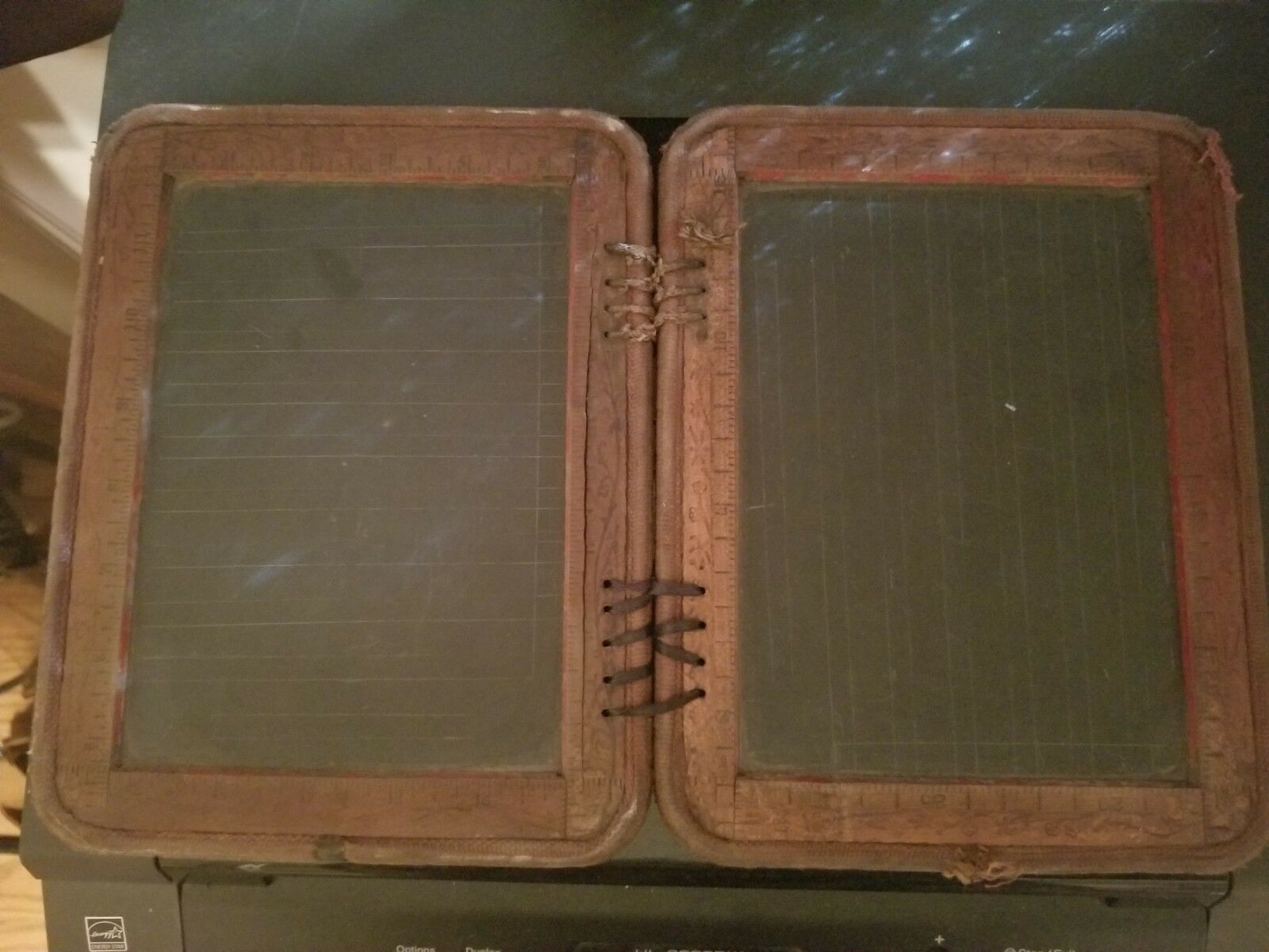 Title (ebay affiliate link): 1900''S ANTIQUE PRIMITIVE DOUBLE FOLDING CHILDS SCHOOLHOUSE SLATE CHALKBOARD