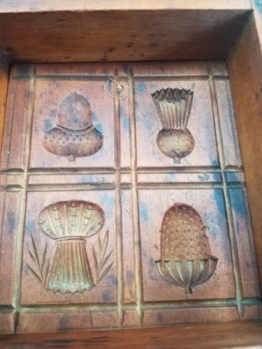 Title (ebay affiliate link): ANTIQUE CHIP CARVED EARLY AMERICAN BUTTER STAMP MOLD STRAWBERRY THISTLE WHEAT NR