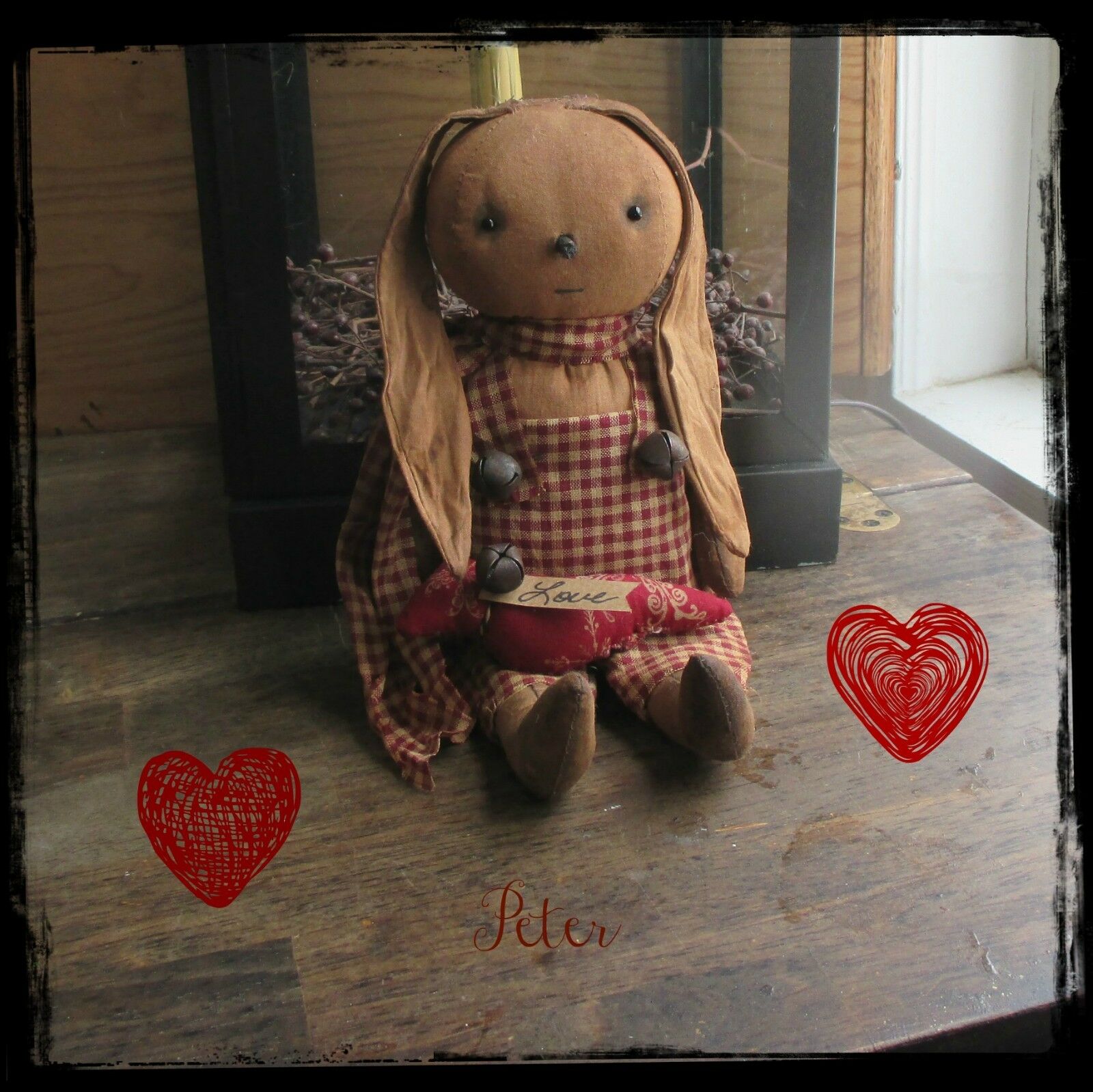 Title (ebay affiliate link): Primitive Brown Spring Bunny Rabbit Doll Sitter Bird Ornie Easter Valentines Day