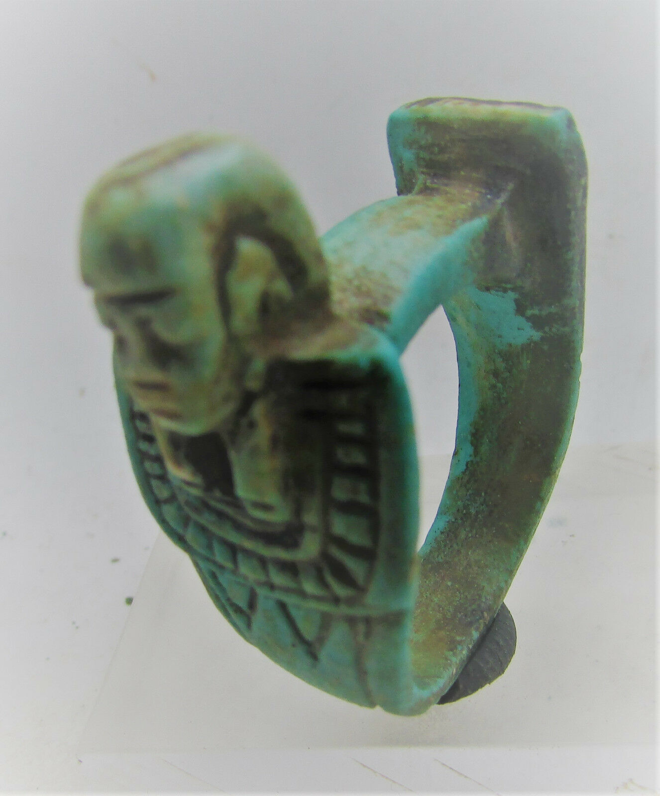Title (ebay affiliate link): SCARCE ANCIENT EGYPTIAN GLAZED FAIENCE SEAL RING WITH PHAROAH BUST