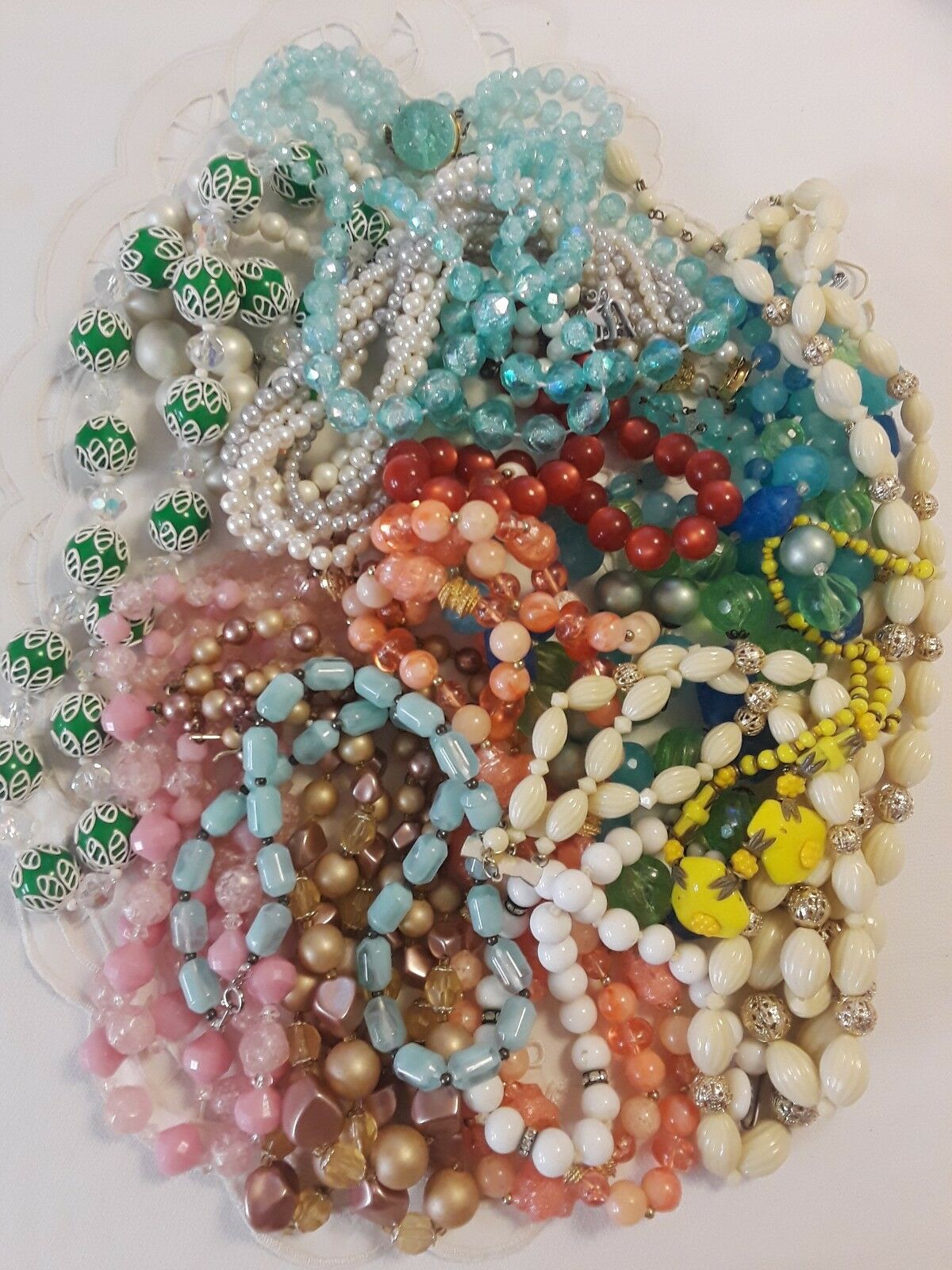 VTG 11 Necklace''s Crafts BEADS Repair AB CRYSTALS MILK GLASS PLASTIC MOON GLOW?