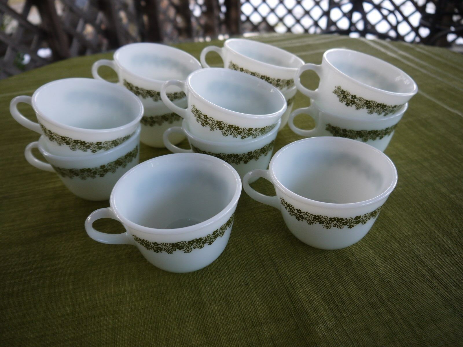 Title (ebay affiliate link): Set of 12 Vintage Pyrex Spring Blossom White Milk Glass 12 oz. Coffee Tea Cups