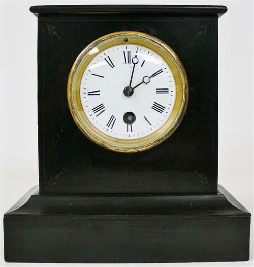 Small Antique 19thC French 8 Day Ebonised Wooden Timepiece Cube Mantel Clock