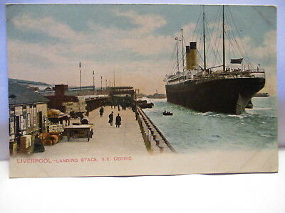 1910 POSTCARD LIVERPOOL LANDING STAGE - S.S. CEDRIC SHIP