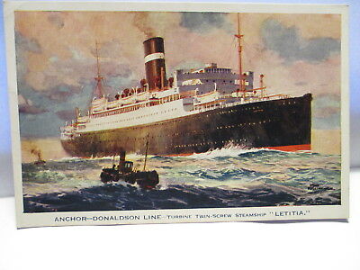 1930s POSTCARD ANCHOR DONALDSON LINE,TURBINE TWIN SCREW STEAMSHIP LETITIA