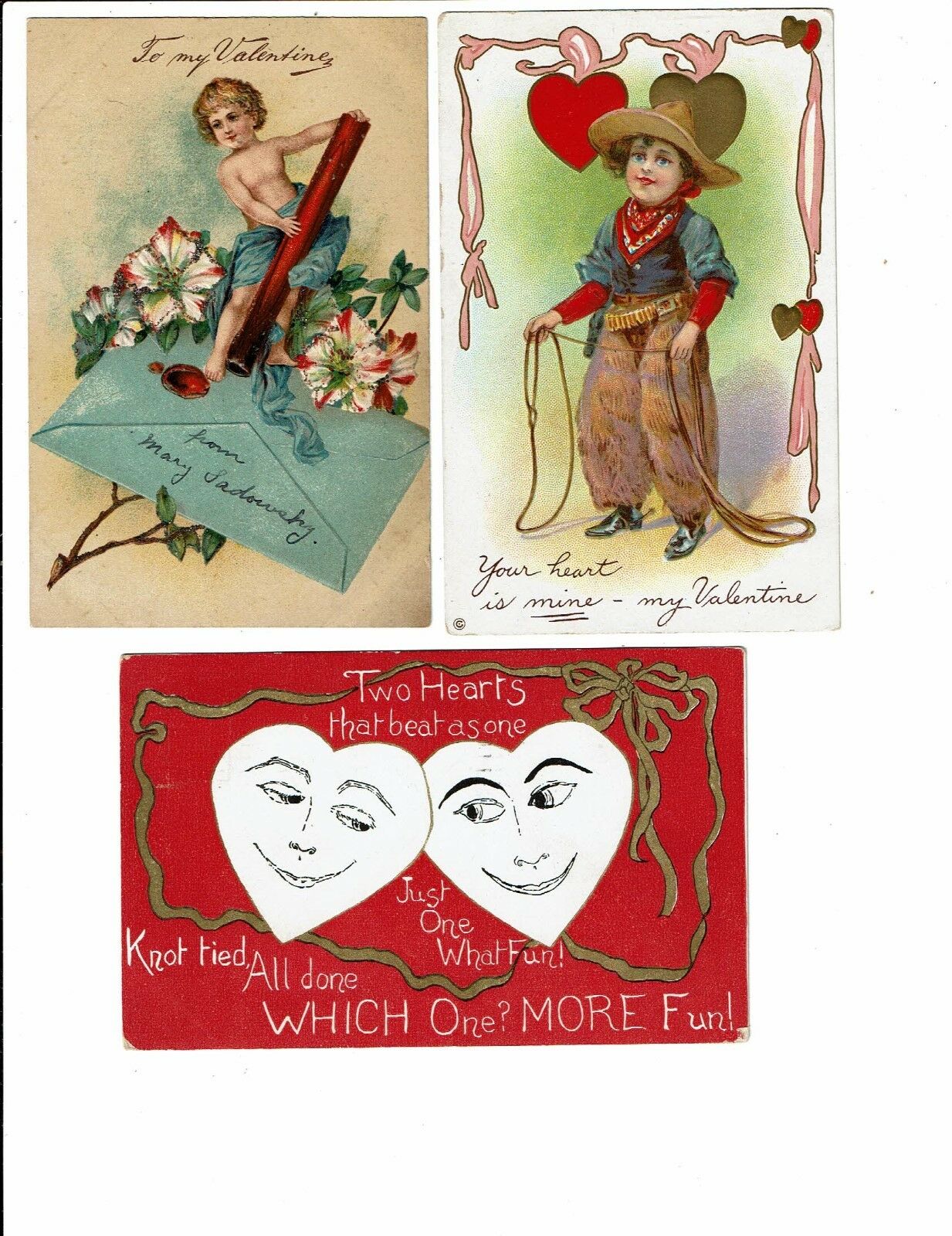 3 Card Lot, Valentine''s Day Holiday, Two Hearts, Little Cowboy, Cupid, Sealing!