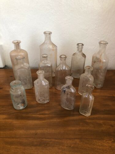Title (ebay affiliate link): LOT OF 12 ANTIQUE VINTAGE EMBOSSED GLASS APOTHECARY MEDICINE BOTTLES