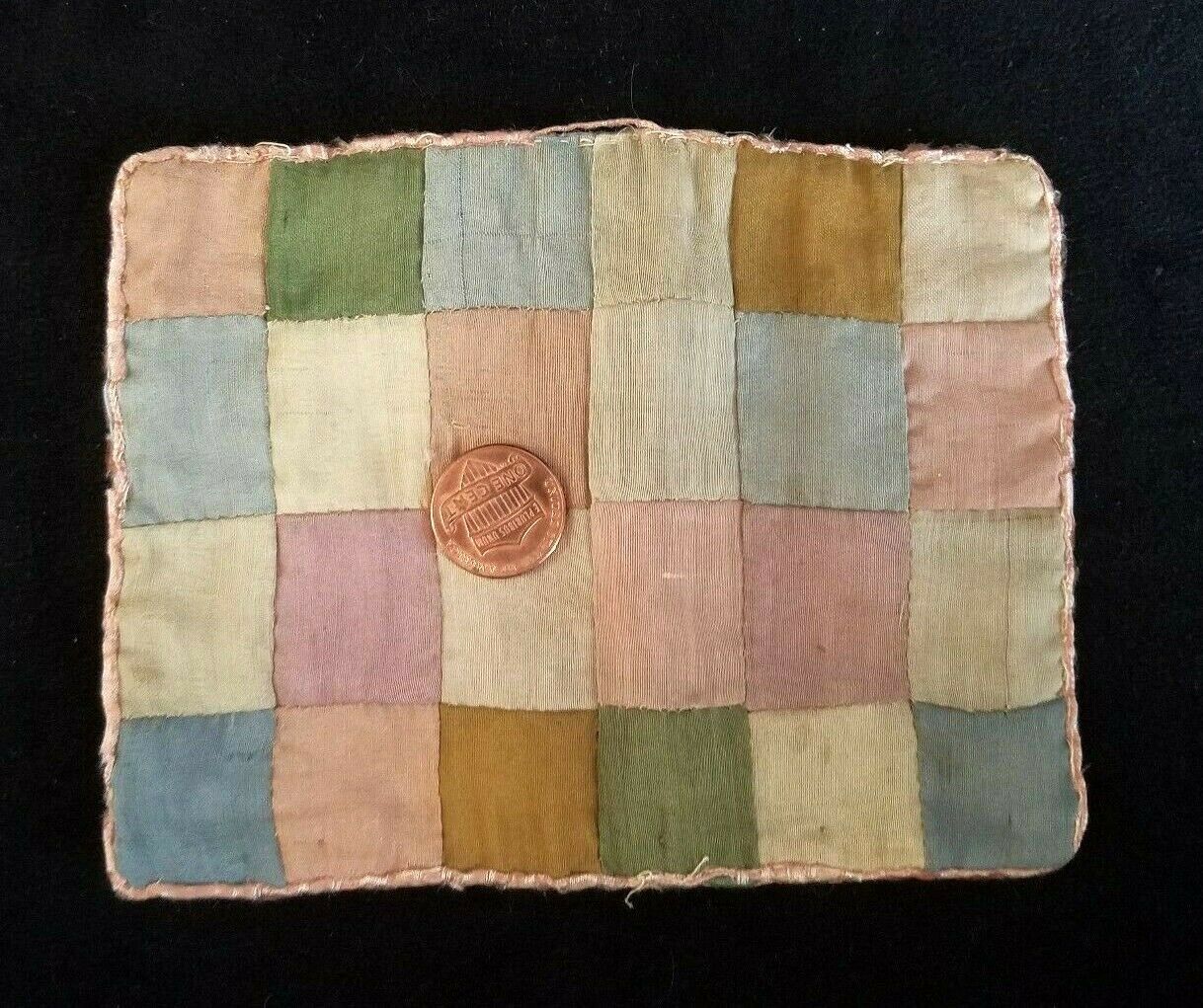 ANTIQUE DOLLHOUSE MINIATURE SILK BED PATCHWORK 5" X 4" HAND MADE QUILT