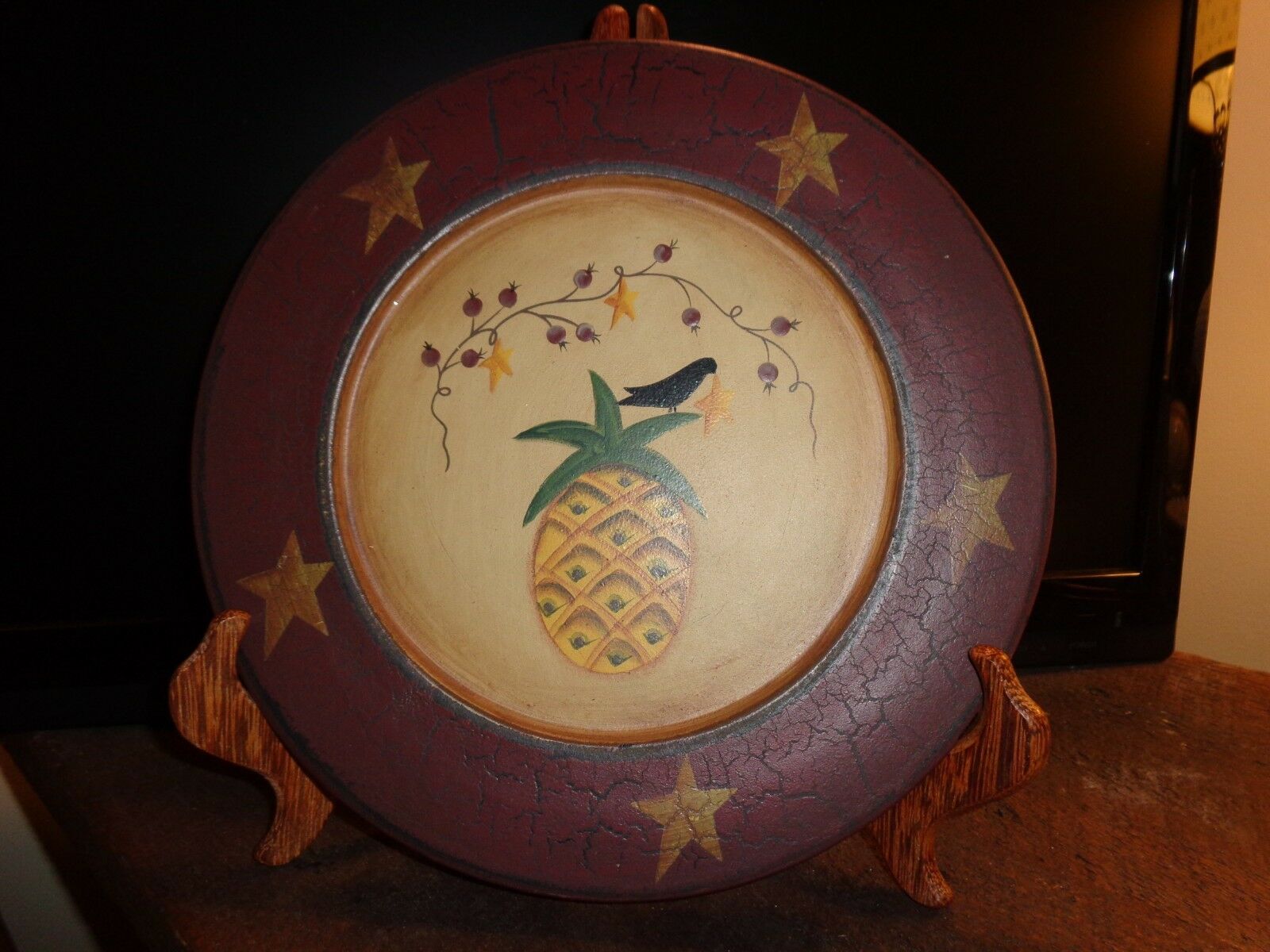 Title (ebay affiliate link): COUNTRY PRIMITIVE 9.5" STARS, PINEAPPLE, CROW PLATE- ONLY