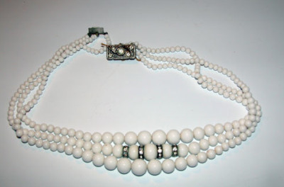 Vintage Milkglass and Rhinestone Necklace