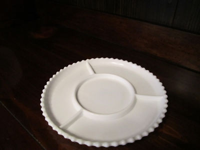 White Milk Glass Relish Tray- 4 compartments! Mint!