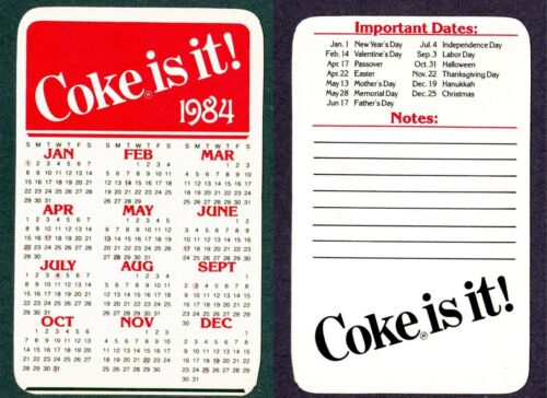 Title (ebay affiliate link): Coca Cola Calendar 1984 pocket 2 1/2 x 3 1/4 COKE IS IT! 35 yrs old!