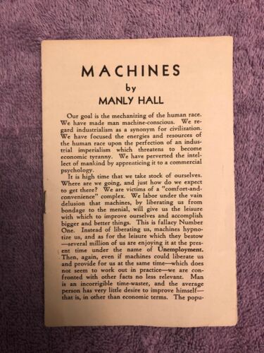 Title (ebay affiliate link): Manly P. Hall MACHINES - 1st ed. VERY SCARCE THEOSOPHY / OCCULT / METAPHYSICS