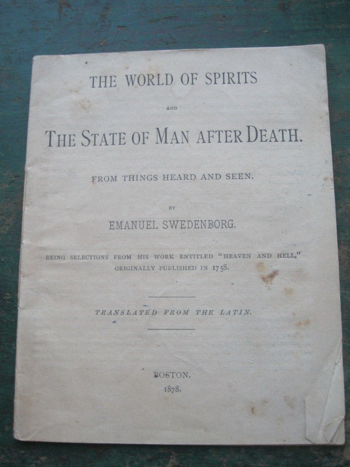 Title (ebay affiliate link): RARE 1878 World of Spirits & The State of Man After Death by Emmanuel Swedenborg