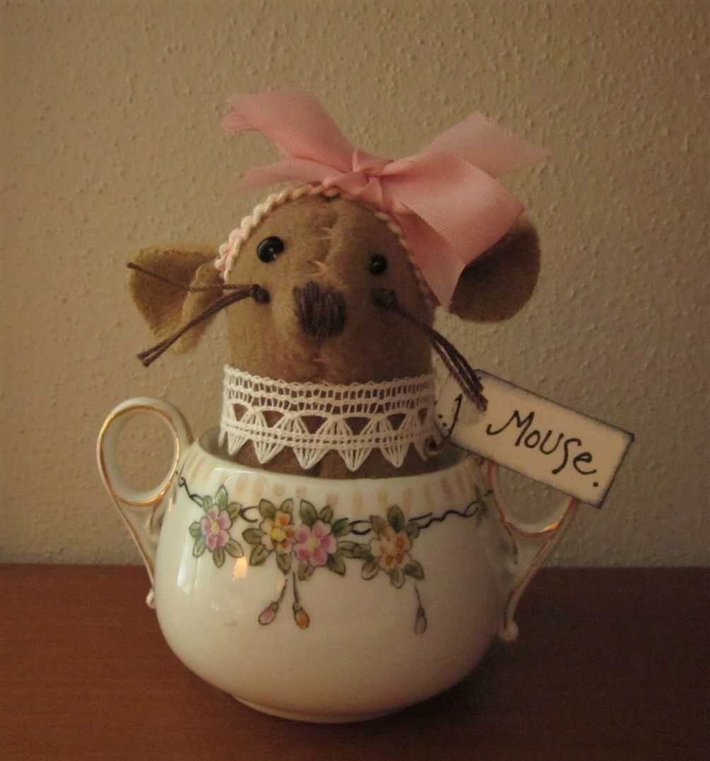Title (ebay affiliate link): PRIMITIVE MOUSE VINTAGE MINIATURE FLORAL SUGAR BOWL SHELF SITTER MAKE DO PFATT