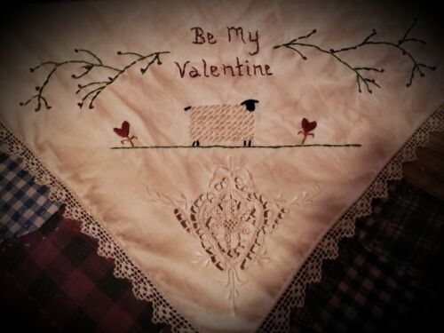 ~*Awesome~* Primitive "BE MY VALENTINE" Hand Stitched Doily! Oh My!