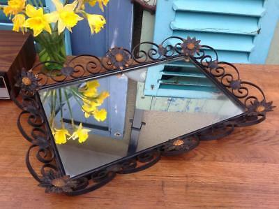 Vintage French Mid Century Mirror Wrought Iron Frame Ornate Flowers 1950''s CHIC