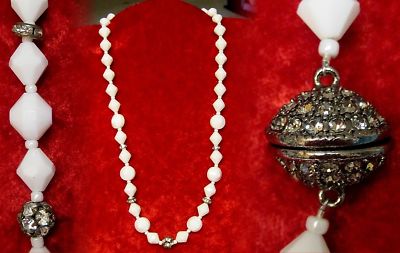 Faceted Milk Glass Necklace Rhinestones Clasp